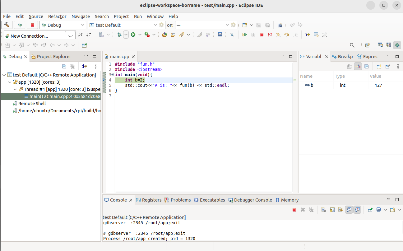 Fig. 4.12 Debugging session on the RPI remotely
