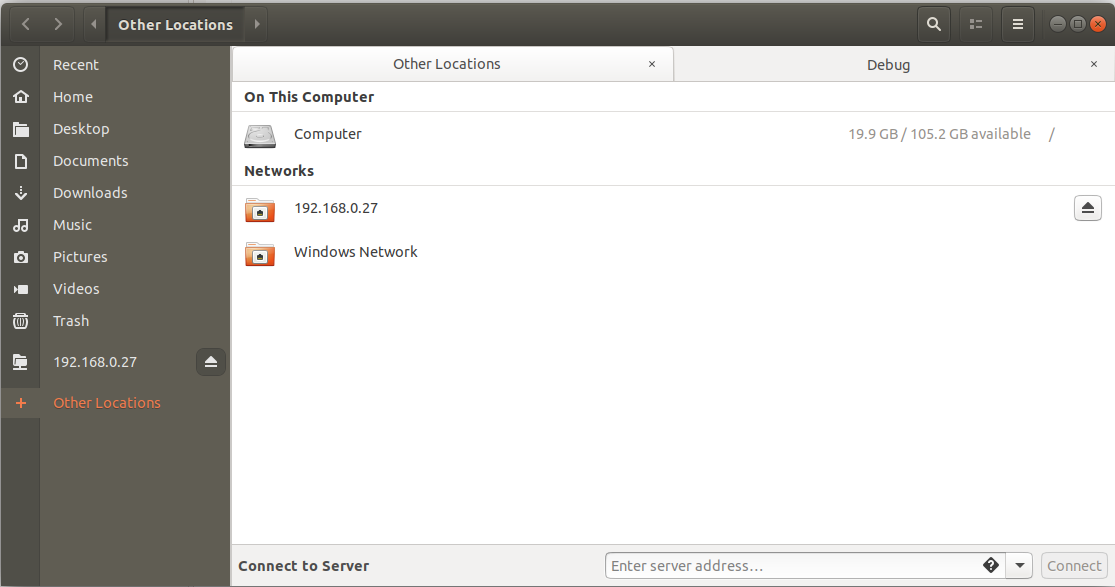 Fig. 4.8 Connect to Server” option in Nautilus explorer